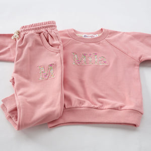 BUBS SWEATSHIRT SET: NAME IN FLORAL EMBROIDERY