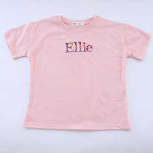Treat your little one to a wardrobe essential with our Personalised Kids Drop Should Tee, featuring their name delicately embroidered in our popular Heirloom Floral font, adding a touch of personalised charm to every wear.