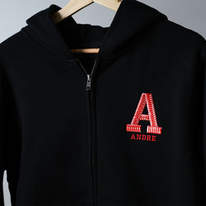 Our Kids Zip Hoodie Personalised with embroidered Varsity Monogram hits the mark with a 3D Puff Weave Ombre effect that’s sure to turn heads.