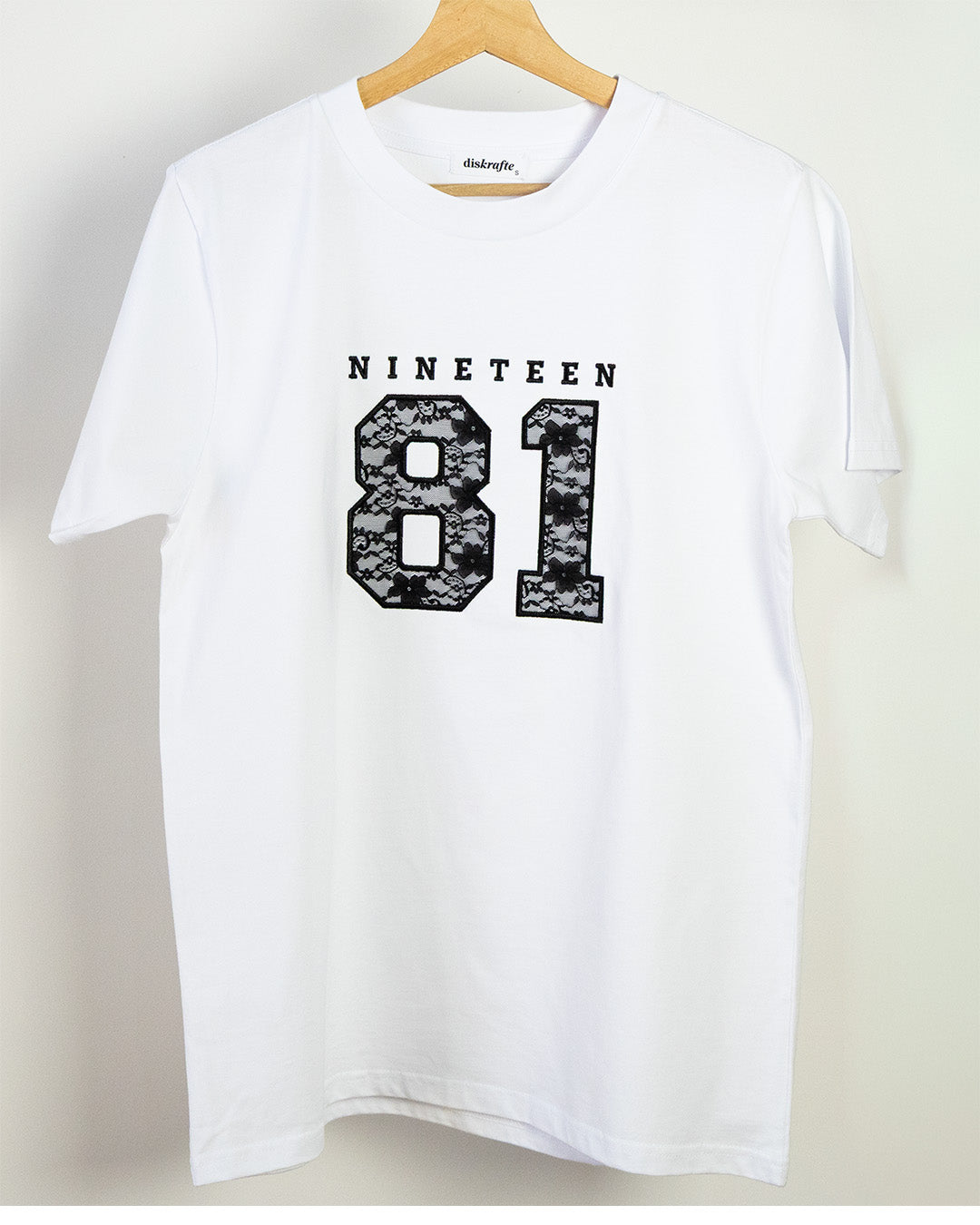 Each lace number is carefully cut and appliquéd, then embroidered with precision to ensure durability and comfort for everyday wear. The result is a refined statement piece that works effortlessly across ages and genders — perfect for kids, adults, and even matching couple or family looks.