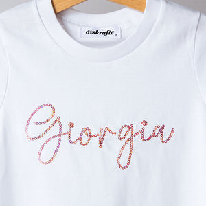Understated, elegant, and oh-so-sparkly — the Sweet Spark Regular Tee captures your child’s name in a fine line of light.