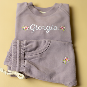 ***Giorgia's name in Purple was embroidered in Lulu font with flower motif on sweatshirt and trackies.
