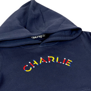 KIDS HOODIE: NAME in COLOURFUL TUBULAR FONT
